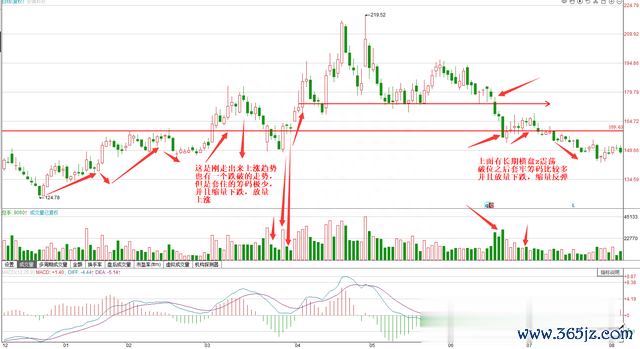 并且这种走势不管回踩到前期的什么位置,后期也是很难走出来一波上涨,首先趋势已经走坏,其次回调放量,说明抛压大,而反弹缩量,说明买盘很弱,并且上面面临大盘的套牢筹码,后期出现继续回调几乎没有多大的悬念,只是时间早晚,幅度大小,速度快慢而已。