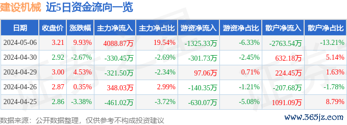 证券之星消息,建设机械涨停收盘,收盘价3.21元。该股于13点3分涨停,1次打开涨停,截止收盘封单资金为1638.83万元,占其流通市值0.41%。